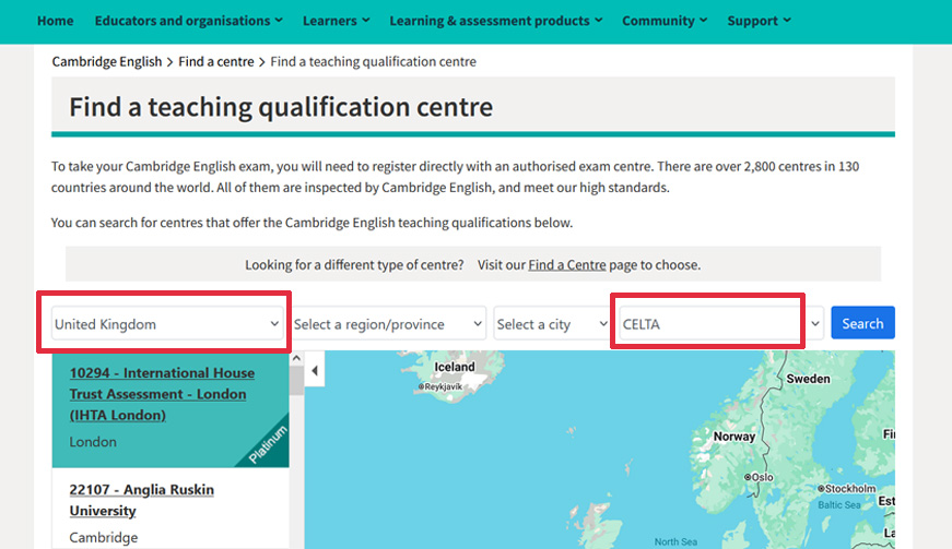 CELTA is delivered only through Cambridge-approved centres worldwide. To begin your journey, simply search for an authorised centre in your preferred location.